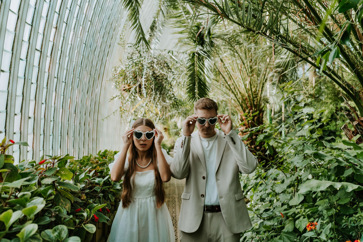 Druhou možností je focení ve skleníku. Exotická zahrada pod skleněnou střechou nabízí unikátní světlo i v nepříznivém počasí. Fotografování je možné v běžných otvíracích hodinách skleníku pro skupinku max. 10 osob. Během tohoto focení je skleník normálně v provozu. Doba pronájmu je 30 minut, poplatek 800 Kč.